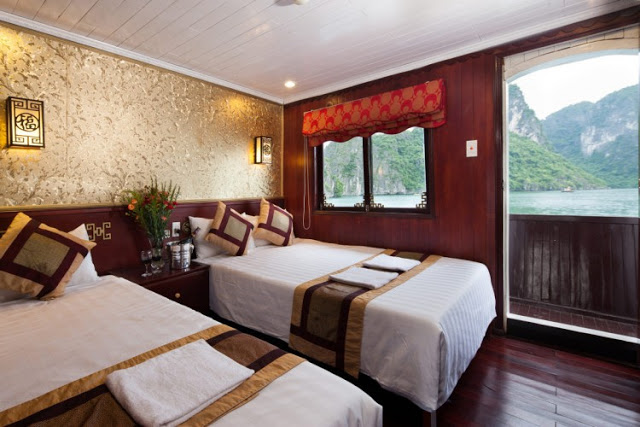 - Phòng ngủ đẹp, có nóng lạnh, có điều hòa trên tàu, 02 kháck/1phòng.